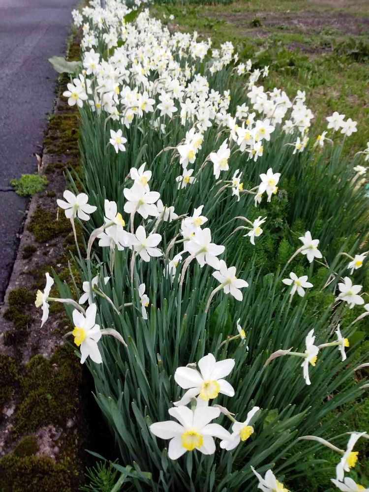 珍しくない水仙ですが、黄色が1本もない、白だけの群生ってちょっと珍しいです😉