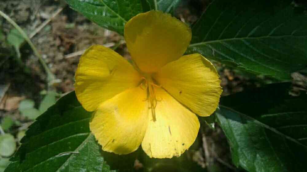 黄色い花投稿3で、メキシコ原産のターネラ・ウルミフォリア(Turnera ulmifolia)です。
