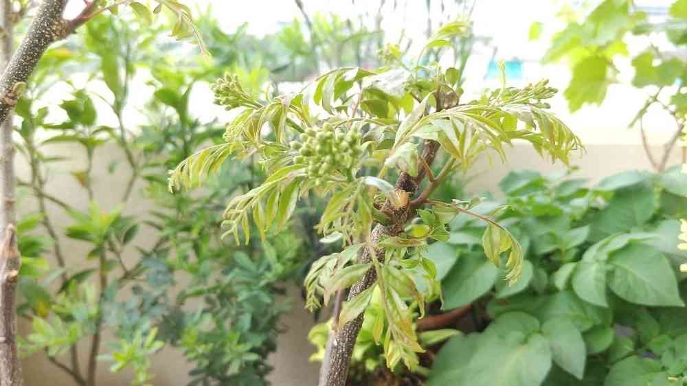 カレーリーフが新芽と花芽を上げて来ました。 最低気温が20ど近くなってくると動き始めます