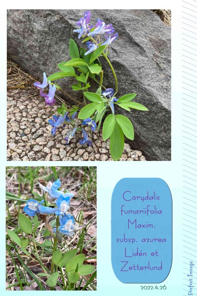 従来、Corydalis ambiguaという学名で、分布地は、北海道から本州の中部以北の日本海側とされていたが、学名はCorydalis fumariifolia subsp. azureaに変更され、本州の東北地方から北陸地方に分布するものは、別種のオトメエンゴサク (Corydalis fukuharae )とされたそうです。