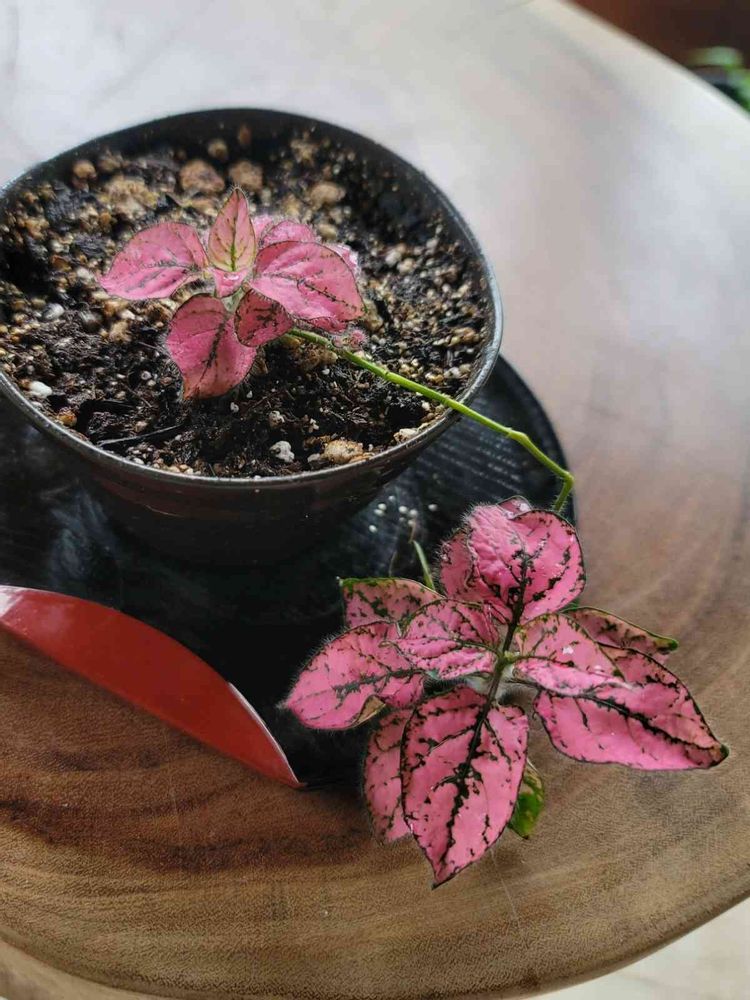 一度瀕死になり、挿し木をしたヒポエステス。日の良く当たる場所に移動したらピンクが濃くなりました。だいぶユニークな生え方をしてます😆