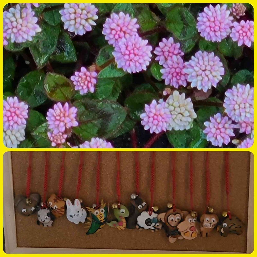 年初めの縁起物として友達にあげていますが、最近は皆スマホ📱♬*゜だから付けること出来ないため友達が考えてあの様に飾って下さっています🐭🐮🐯🐰🐲🐍🐴🐑🐒🐓🐶🐗