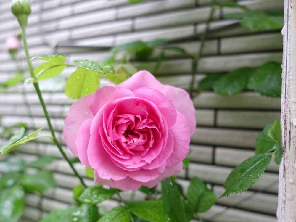雨上がりの朝、壁際のジェキルさんだけが、無事に咲いていました😍🌹🌿