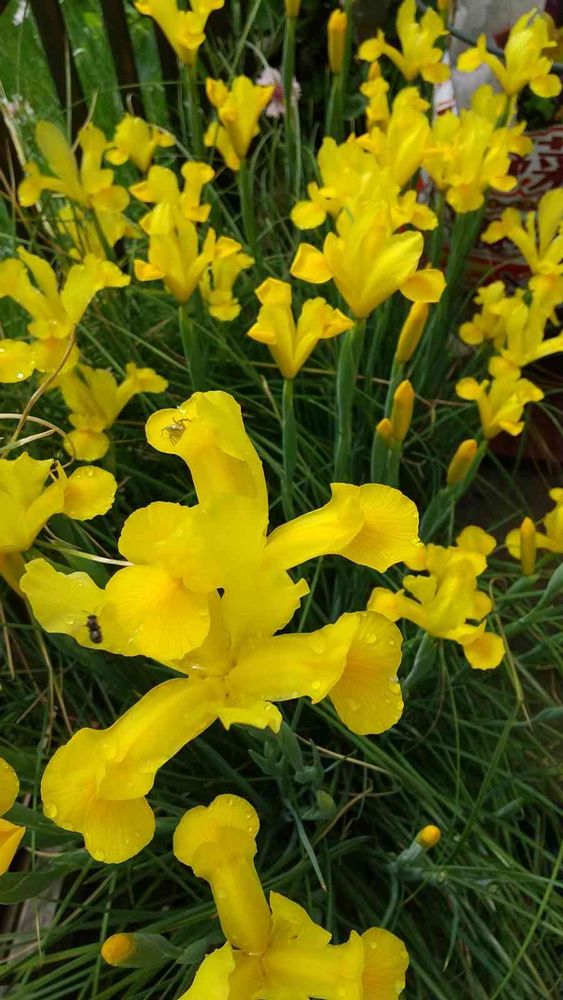 青いアイリスが終わったところで、黄色いアイリスが咲きました。