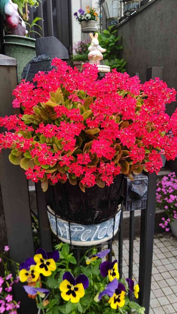 家の窓辺に飾ってあったカランコエを外の玄関先に飾りました🐸💞
