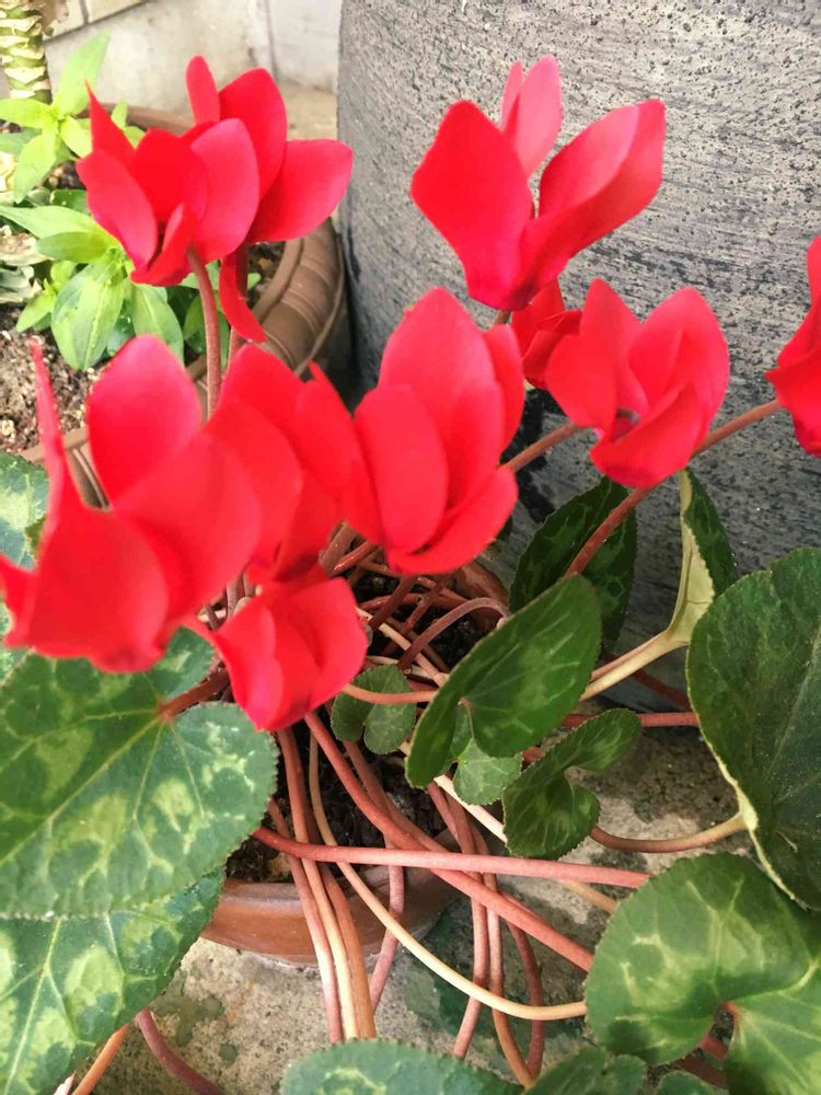 見事なシクラメン(^ ^)赤は映えますね😊❤️