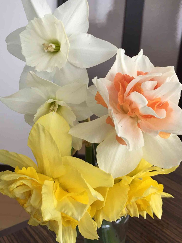 やっと咲いてきた八重咲スイセンが倒れたり折れてしまいました。😔