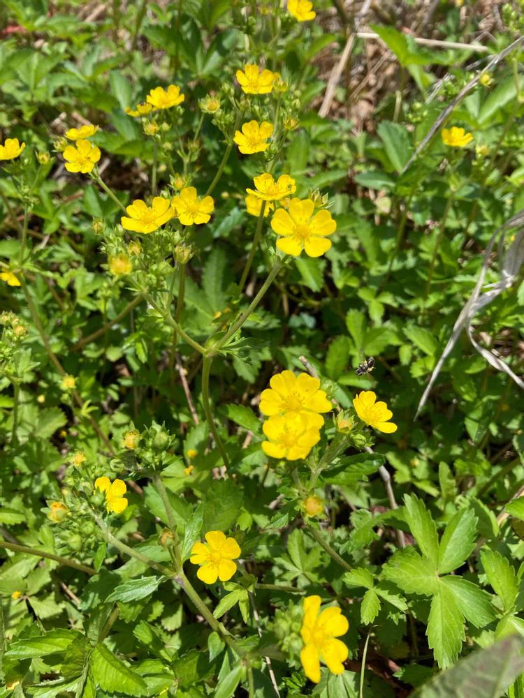 この辺りのお花 難しくて…💦だけど 葉っぱ5枚あるから オヘビイチゴ🍓かな❓