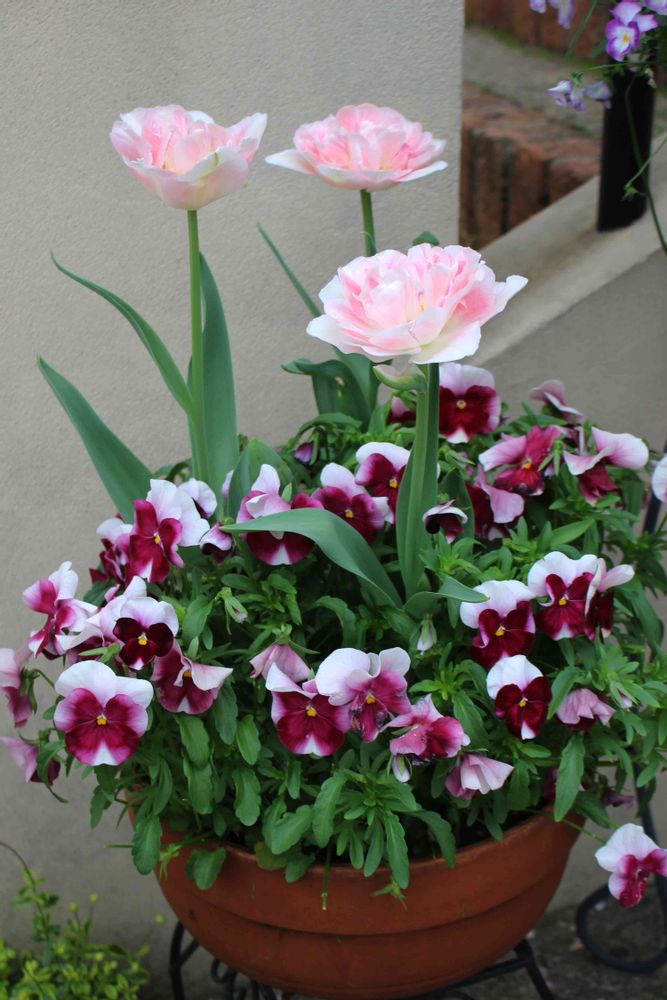 パンジーとチューリップの組み合わせは鉄板ですね~💕