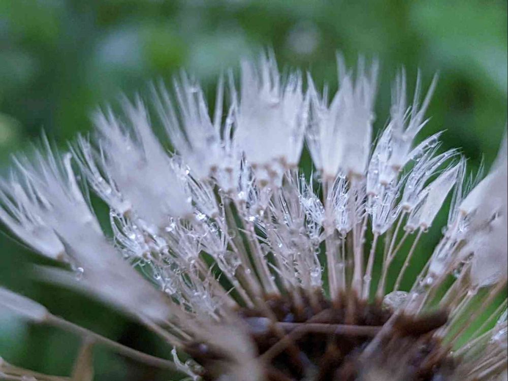 これがまた乾いて、普通の綿毛になるのか🤔タンポポ綿毛って、強いですね✨