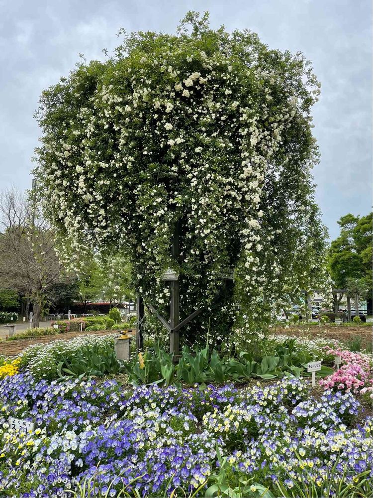 大きなオベリスク、シロモッコウバラは1本なのでしょうかね〜すごい迫力ですよ😳