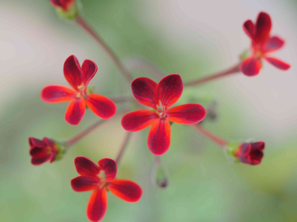 原種のペラルゴニウムは小花で遠目に見ると地味だけど、緑の中でピリリと赤を効かせています😁
