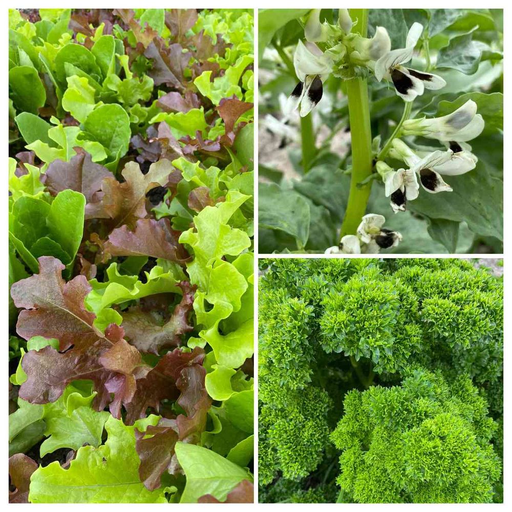ミックスレタス🥬ちょっとグロテスクなソラマメの花😳モフモフなパセリ🥦