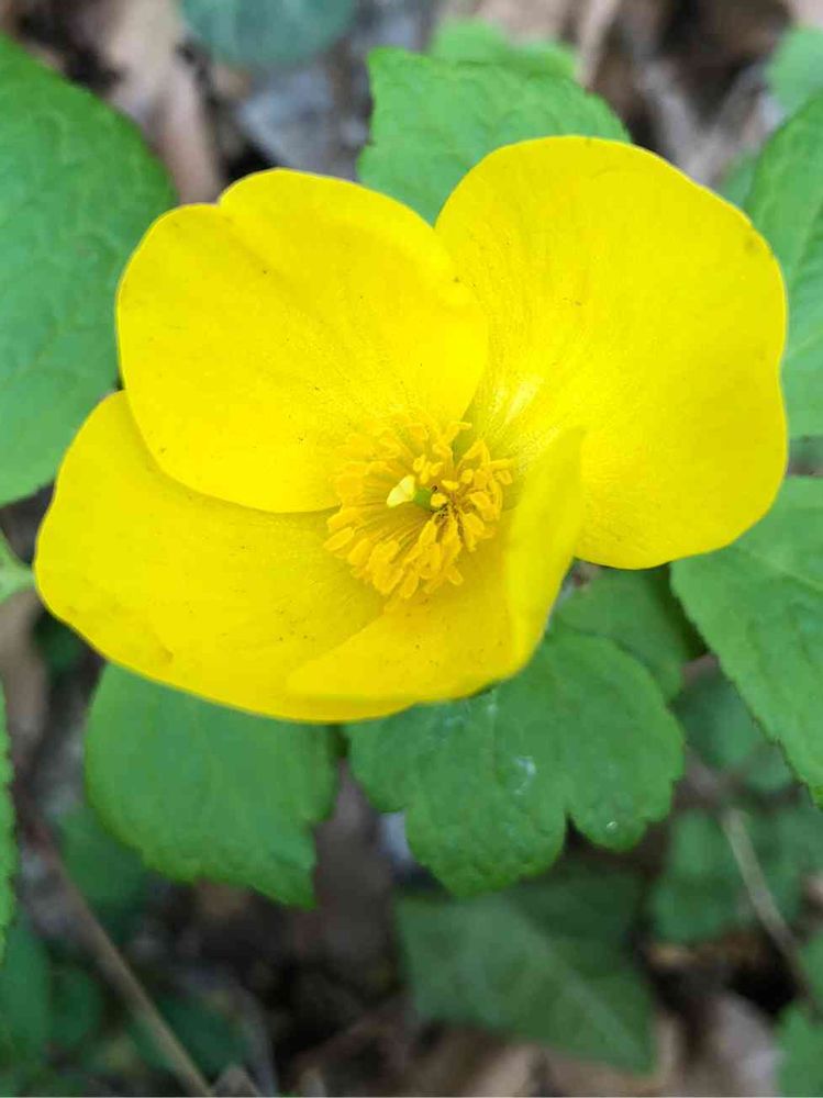 先程の群生のヤマブキソウのアップ ヤマブキに比べ少し立体カップ型?