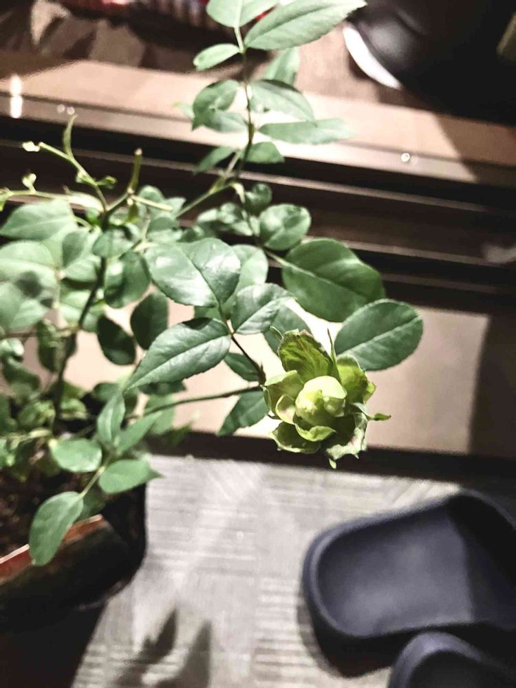 夜にチャイナローズのグリーンローズさんをお迎え🌹