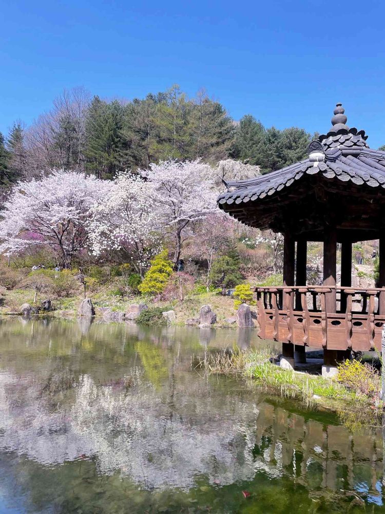 山なので4月中旬でもモクレンや桜が咲いていました。韓国にはあまりない枝垂れ桜も少しありました。