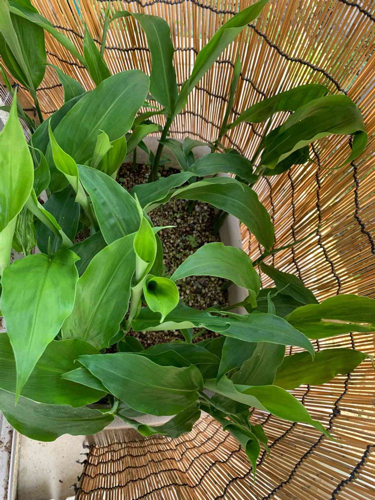 上からの写真だけど、茗荷がワサワサと生えてきました。地植えにしたいけど、植える場所がありません。