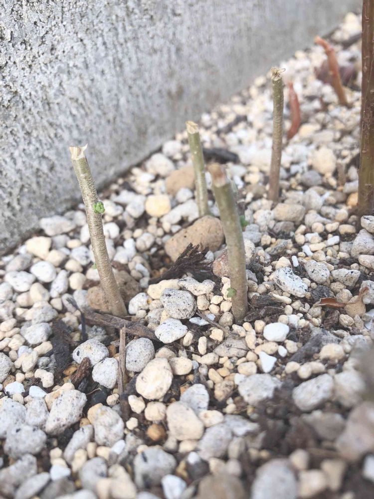 多肉花壇に刺しておいた棒から赤ちゃん💚