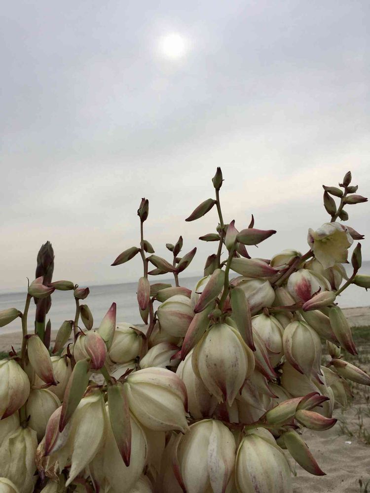 海辺の、君が代蘭、,いつ見ても,不思議です^_^曇空の,中,から,うっすら,おひさまが見える〜