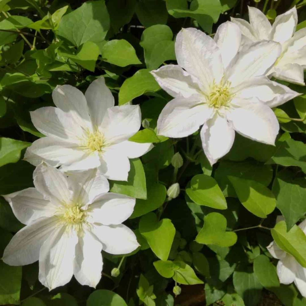太陽の光を浴びて輝く、クレマチス白雪姫✨