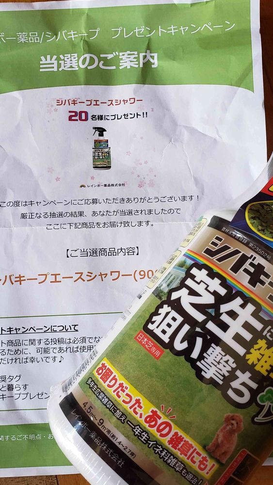 芝生の除草剤、当選しました🎉
