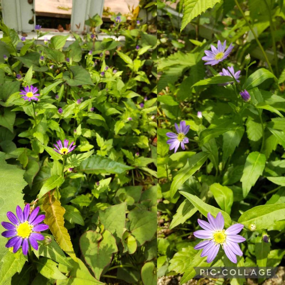 濃い色と少し薄い紫の2種類のミヤコワスレが咲き始めました😄