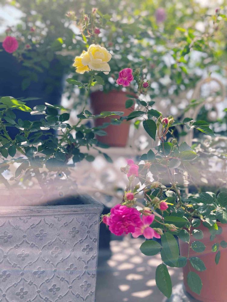 薔薇5年目のベランダガーデナーです☺️ 見事にバラにはまりました🌹🥰 GSでますます欲しい品種が増えてます😁半日影のベランダなのでどうしても花数は少なめ。地植えのようわーっと豪華、とはなりませんが一輪一輪を美しく❗️をモットーにバラを楽しんでいます🤗 最近使っているお気に入りアイテム ●バラの家プレミアム培養土(普通の緑タイプより水もちアップ) ●京成バラ園の土(近所のHCで買える良い土) ●リキダス、ハイポネックス レイシオ を水やり時と葉面散布に使っています ●バラの家の有機肥料→去年からやローズショップの有機肥料にしてみた 月1回だいたい1掴みほど撒いてる ●リッチェルの鉢 定番のグリーン ●デルバールの青い鉢 ●鉄線 枝の調整に曲げて鉢に差したりなにかと使える ●盆栽用の細いワイヤーは誘引が目立たなくてネジネジもしやすくて1番よく使います ●白のラティス お迎えしたいバラ ★ブランピエールドゥロンサール→ずっとほしい ★アミロマンもうひとつ→お迎え済み🎵 ★ルージュピエールドゥロンサール→ボーリングが心配で買えてないけどずっと気になる ★デルバール ダムドゥシュノンソー →ピンク増えすぎで保留 ラドルチェヴィータ ★まそら→ほしい度が急上昇中✨ ★ラマリエ ★ガブリエル→お迎え済み ★リラ ★レイニーブルーもうひとつ‥置けないか🙃 ★香りならペッシュボンボンとクロードモネも ★ヒラヒラ系だとニューウェーブ、ホリデーアイランドピオニー ★おしゃれ系?ソニアリキエル、ジュビリーセレブレーション ★河本さんだとシャルム、リアンローズ 最近ほしいリストにコンフィチュール、ブルームーンストーン クリスティアーナ、パシュミナも加わりました_φ(・_・