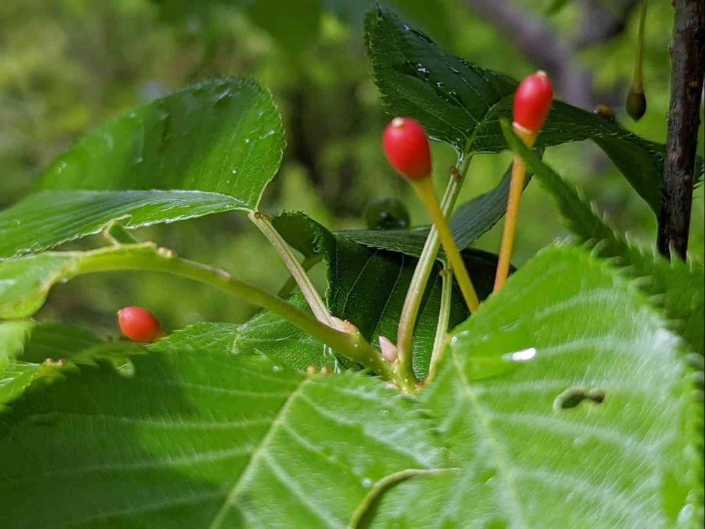 昨日 枝垂れ桜には今年も可愛い赤いらしい実がなっていました 庭の他の桜には確認できた事が無いのですが…