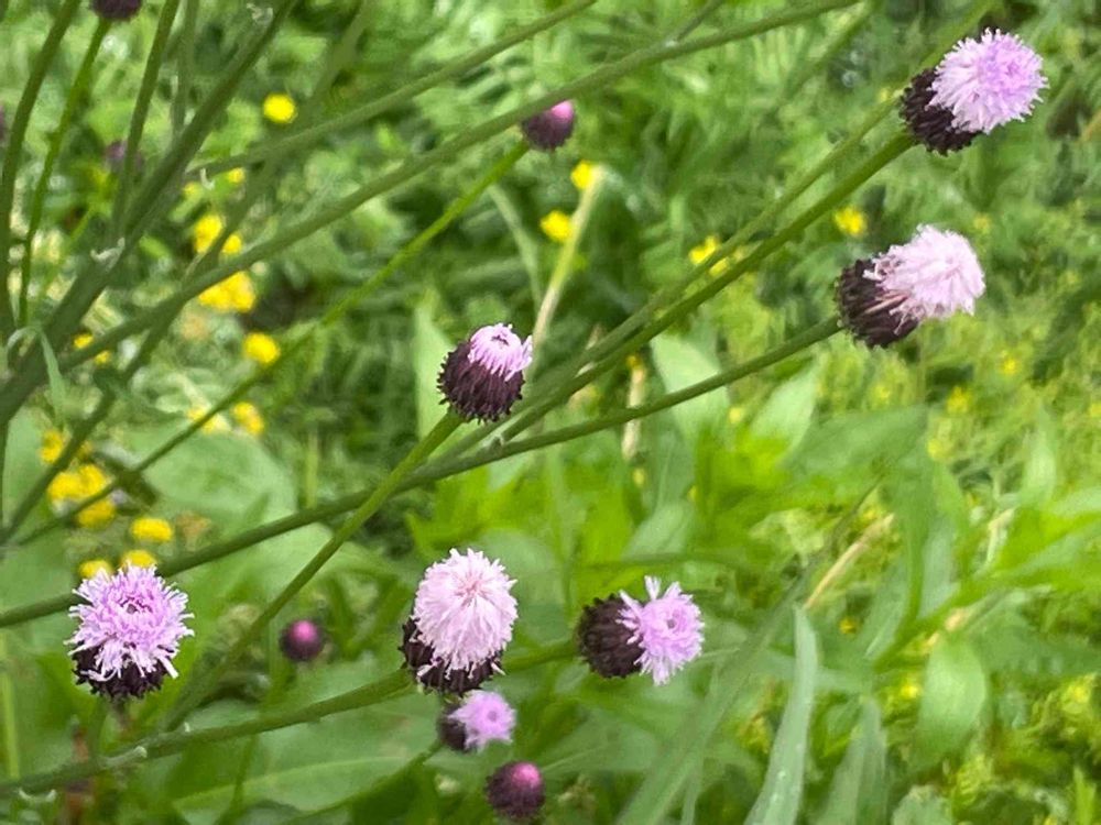野草の宝庫の緑の中に、キツネアザミのピンクの花がいっぱい咲いていました🌸