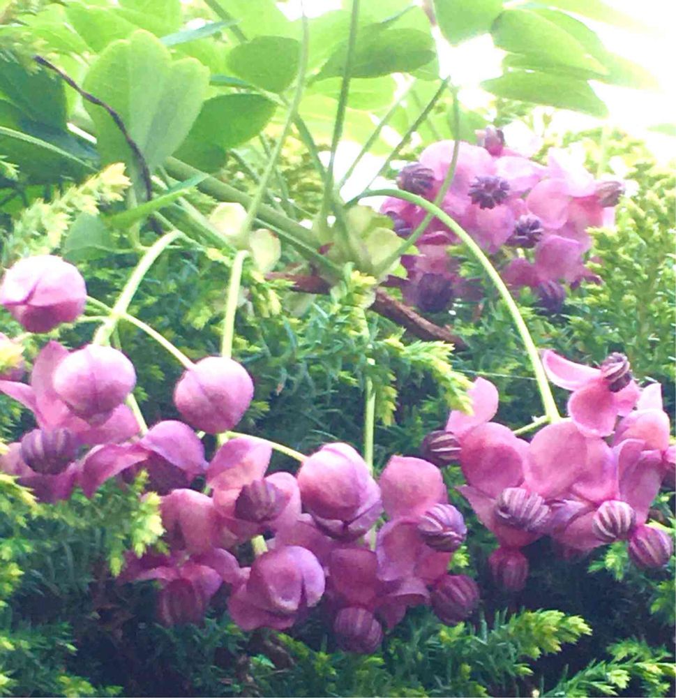 あけびというと、産直とかで、食べる実のイメージですが、お花は、こんなに可愛いのですね。