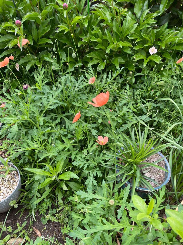 私も植物の横でメダカを育て子供も沢山育て、友達にお分けしておりましたが、夜中に沢山のメダカが盗難に合い飼育を残念しておりましたが、暖かくなった為容器の清掃を使用と覗いたところ黒いメダカのみ確認しました。ひなげしも増えています。