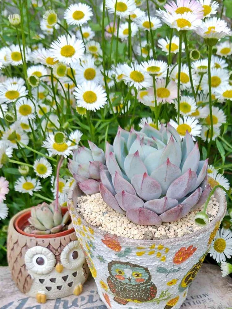 ちゅりさんのフクロウ🦉鉢、まわりにはお花もいっぱいあって、可愛いんですよ〜♥(ˆ︶ˆԅ) プリズムさんも
