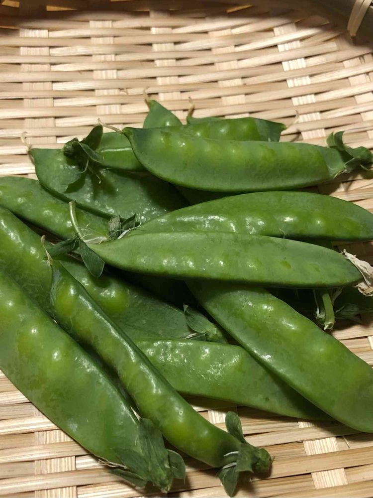 朝採ってみた初物の絹さや。