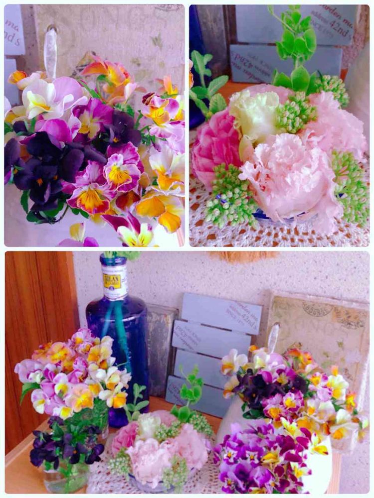 先日のWSのフラワーアレンジメントもまだ可愛いところを仕立てなおしてビオラと一緒に飾って📷パシャリ✨✨