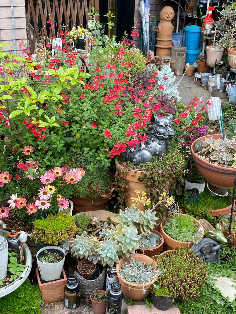 真ん中のシーサーさんの鉢は虹の玉ですか?👀