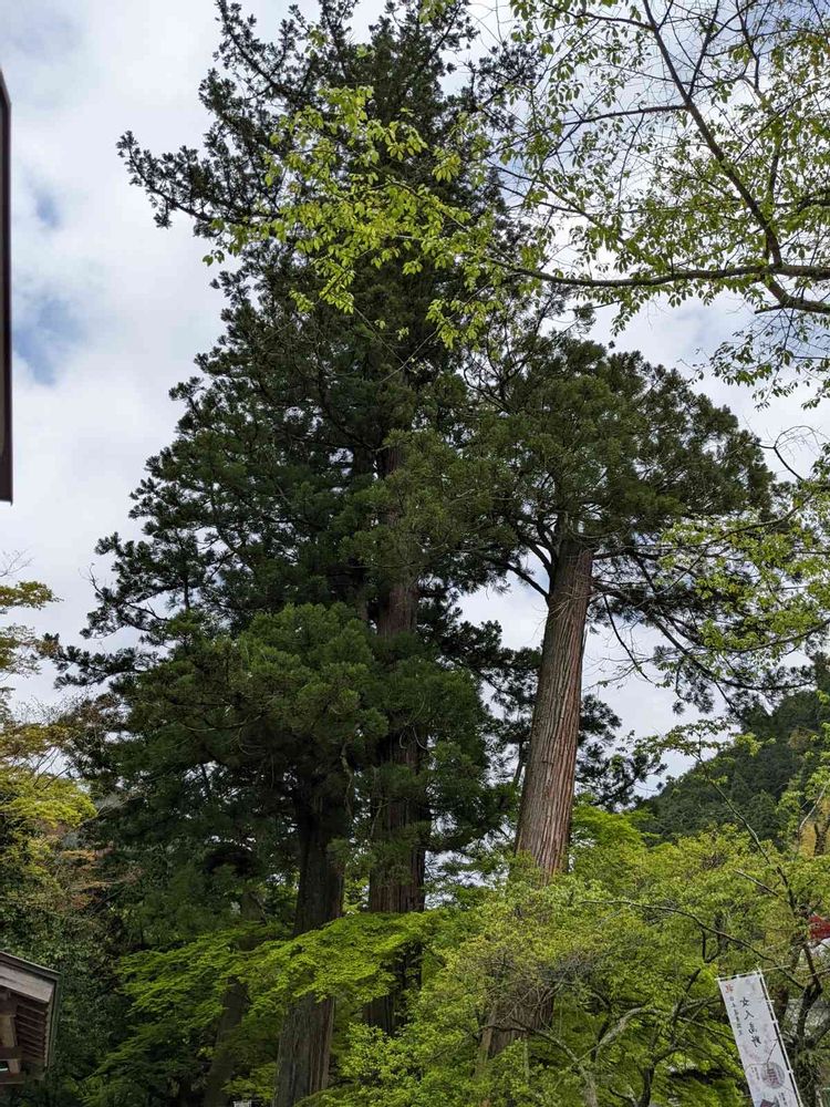 参道脇で見た❗三本の大きな🌲杉の古木🌲三宝杉と言うそうです