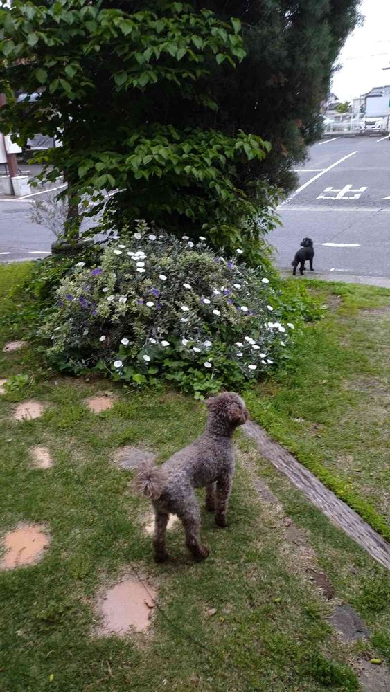 真夜中投稿になっちゃいました。お出かけ先の花屋さんの店先で…お花屋さんのワンちゃん親子の写メが撮れたのでアップする気になってしまいました。なかなか動物を写メするのは難しくて…いつも撮りそこねてるのですが…今日は上手く写メできました〜👍💕