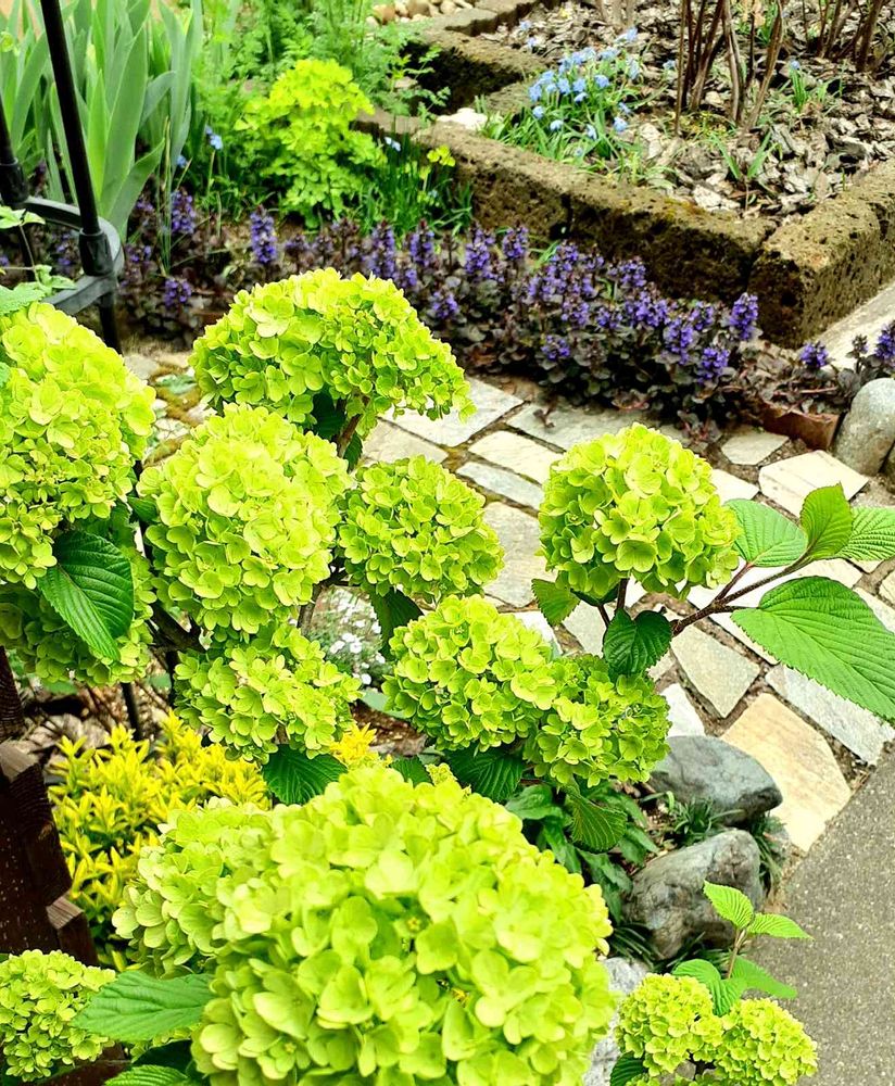 アジュガ💜とオオデマリ💚でやまぐちさんカラーだなっ!と思いました😁
