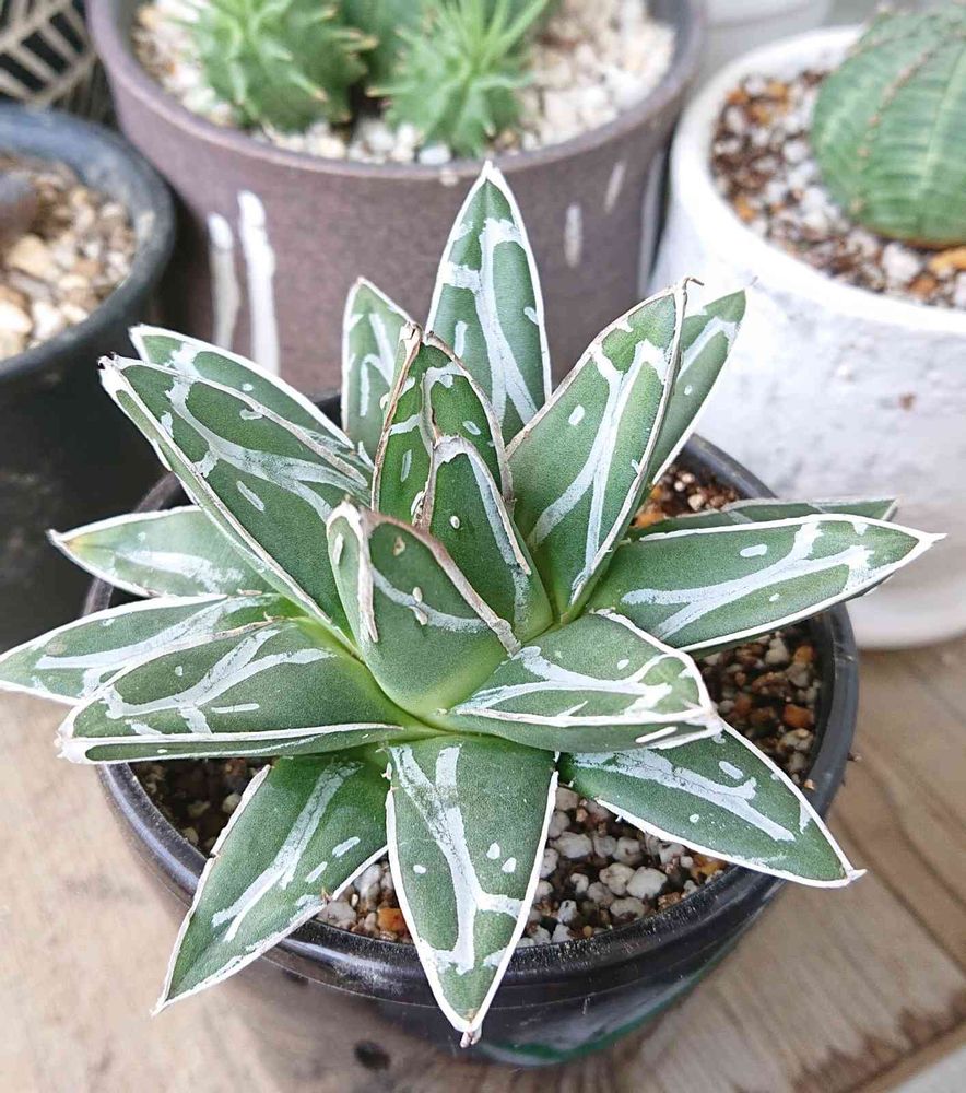 このアガベさんは初めて見ました。葉に模様がついているんですね✨