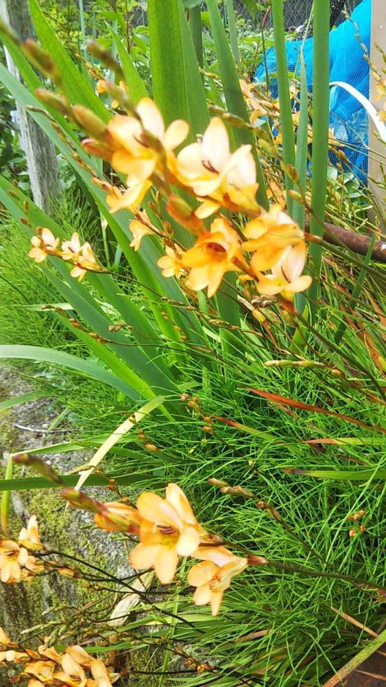 家のイキシアはピンクと白の子です。この子達細い茎で、長く伸びて咲いています。