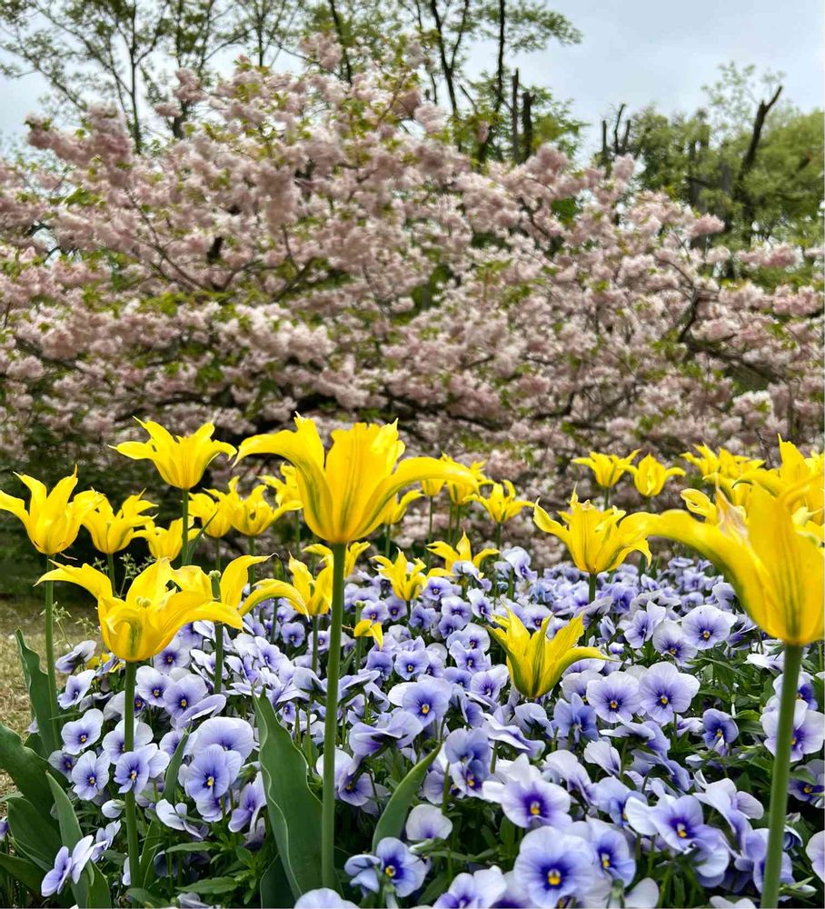 チューリップ、ビオラパンジーが揺れるように咲いていて華やか〜😆