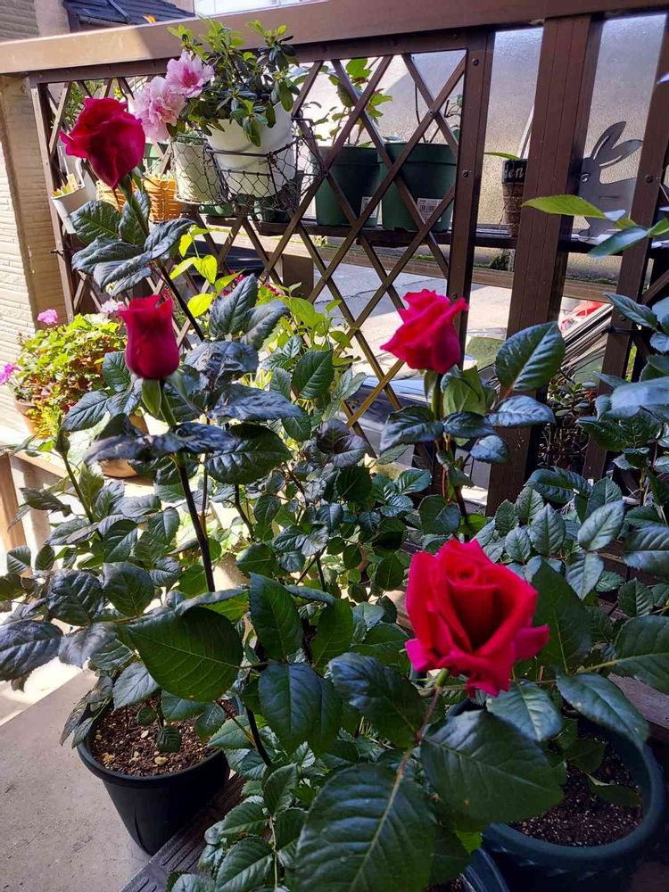 うれしくて、鉢をアチコチに移動させては御満悦ですよ〜 初めての経験です! 薔薇は、美しい!🎶👍