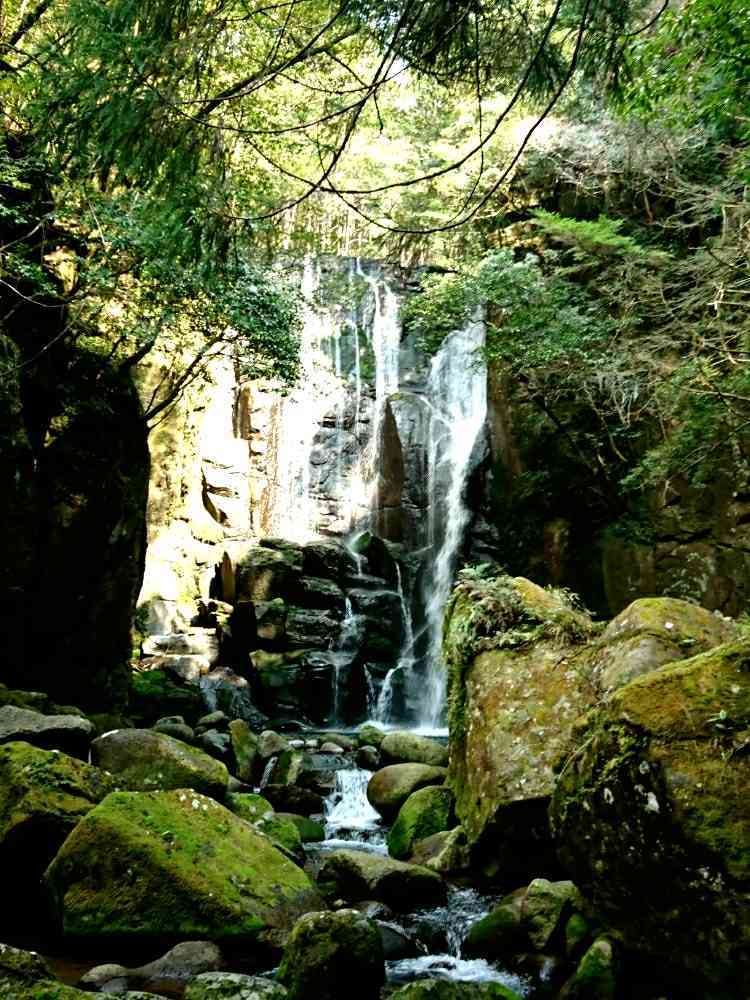 山の中を15分ほど歩くと見える滝。