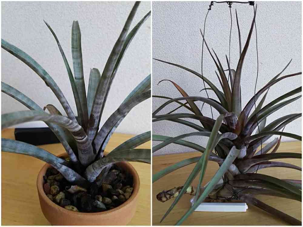 昨晩の水やり組、チランジア・ヒルダエ(左)とチランジア・ノバキー(右)です😄。