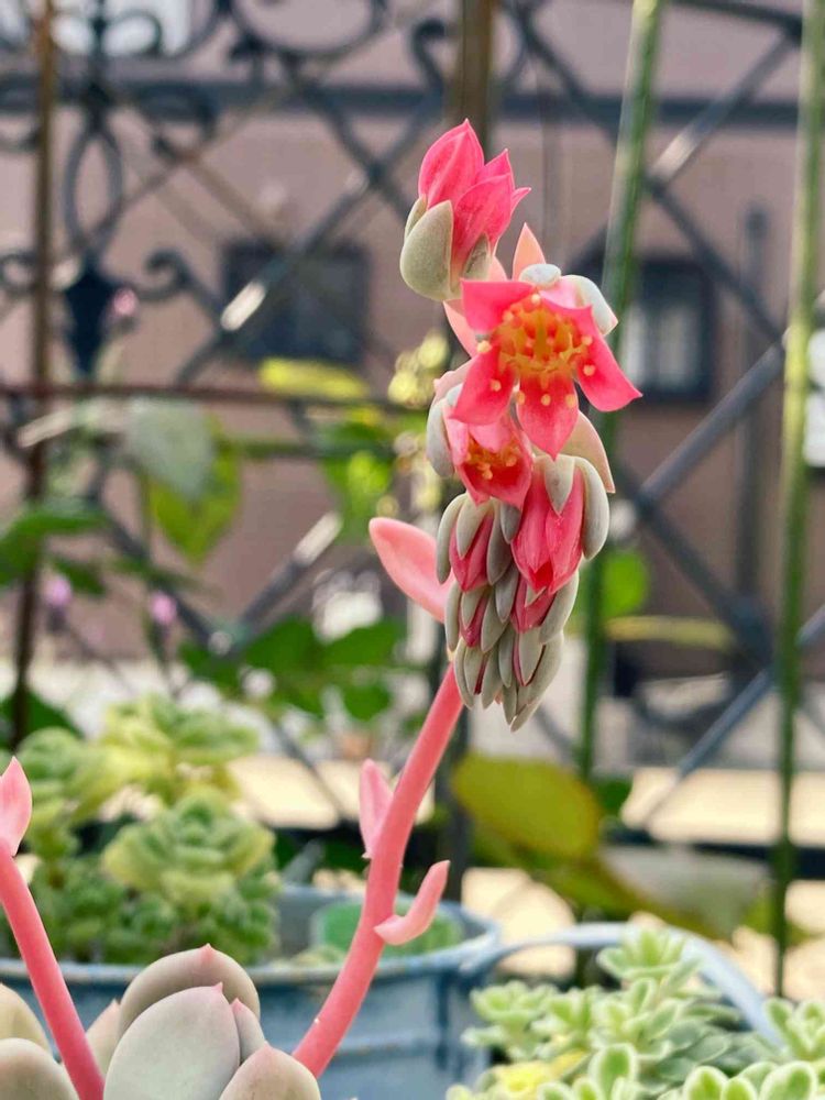 バラもあちこちで咲いていますが、多肉も花盛り😍
