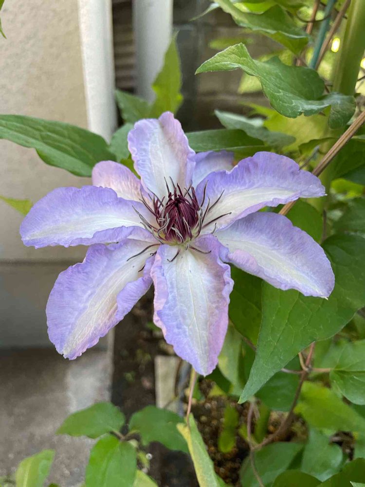 クレマチス 美佐世。昨日咲いたばかりを投稿し、シワシワな感じでしたが、今日は天気もよく、アイロンかけたみたいにピシッとシャキッと咲いていました😆