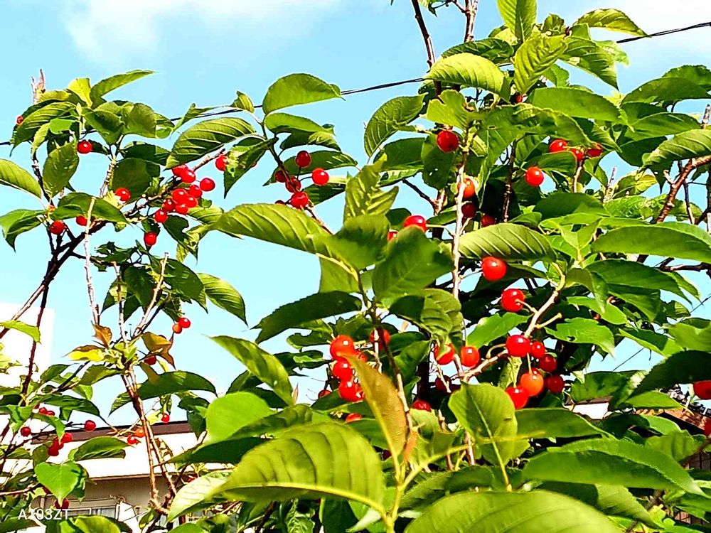 出勤途中で、通り道のお宅に、サクランボ🍒が真っ赤に食べ頃に、成りました。