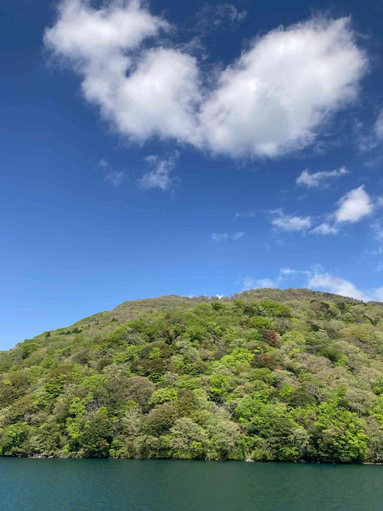 芦ノ湖から見た新緑と雲の形がきれいだったので✨