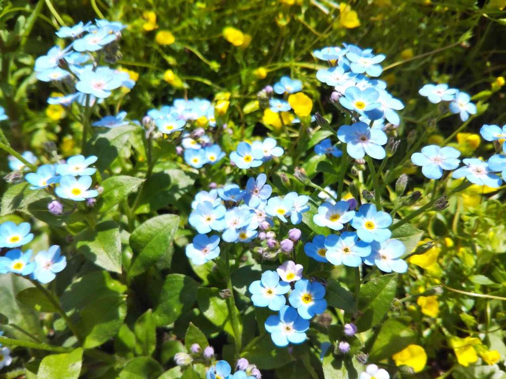 荒れ気味の花壇の中で、ミオソティスミオマルクが2回目の花を咲かせていました✨