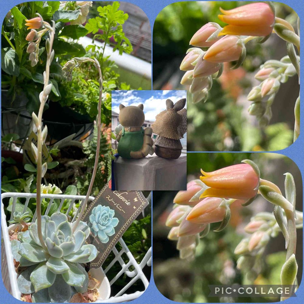 多肉さんの花芽随分背が高く伸びるのですね✨その先のお花が可愛らしいです🌸💓💓